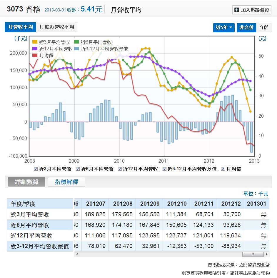 雖然這間公司的每一個財務指標都過不了關,但是還是看一下營收的狀況,本身營收也越來越差。選成長力分析→長短期月營收平均值: