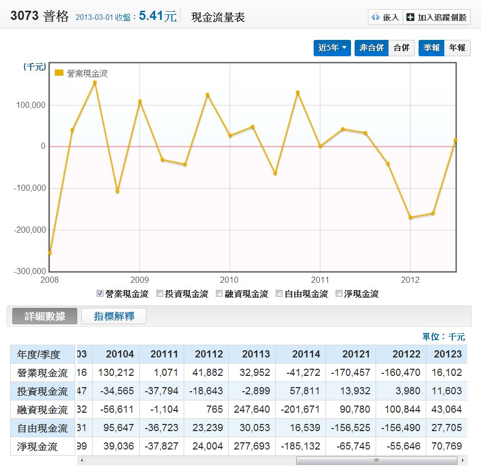 營業現金流量更不用提,一樣以負居多。